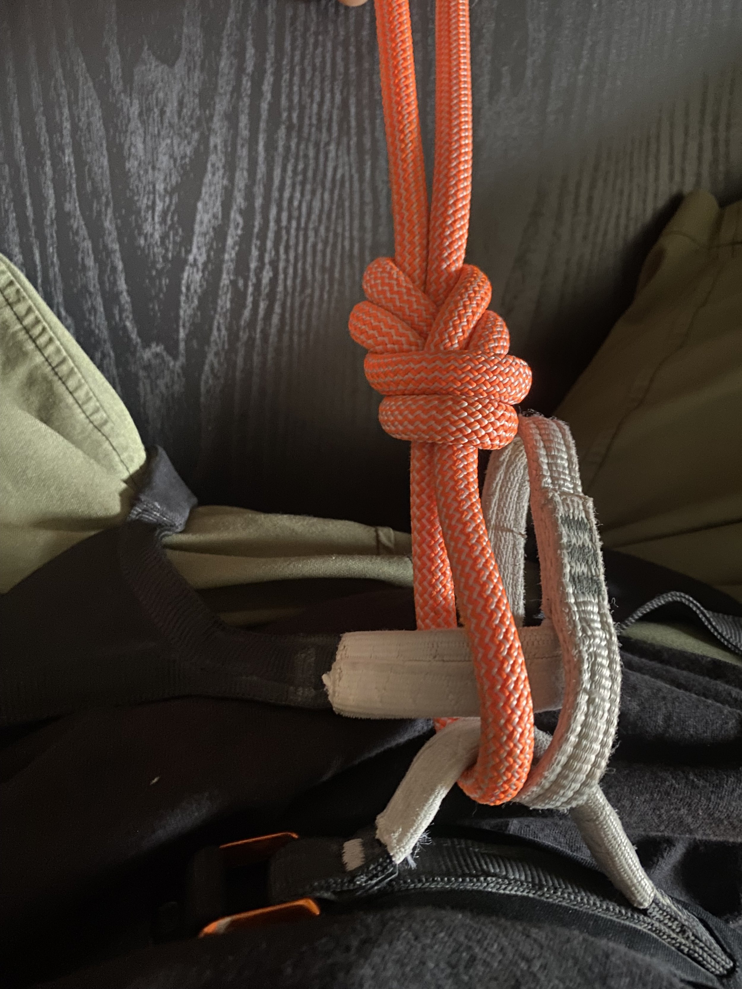Ensure the knot is attached to the harness at both “Hard Points” of the harness with no loose loops.